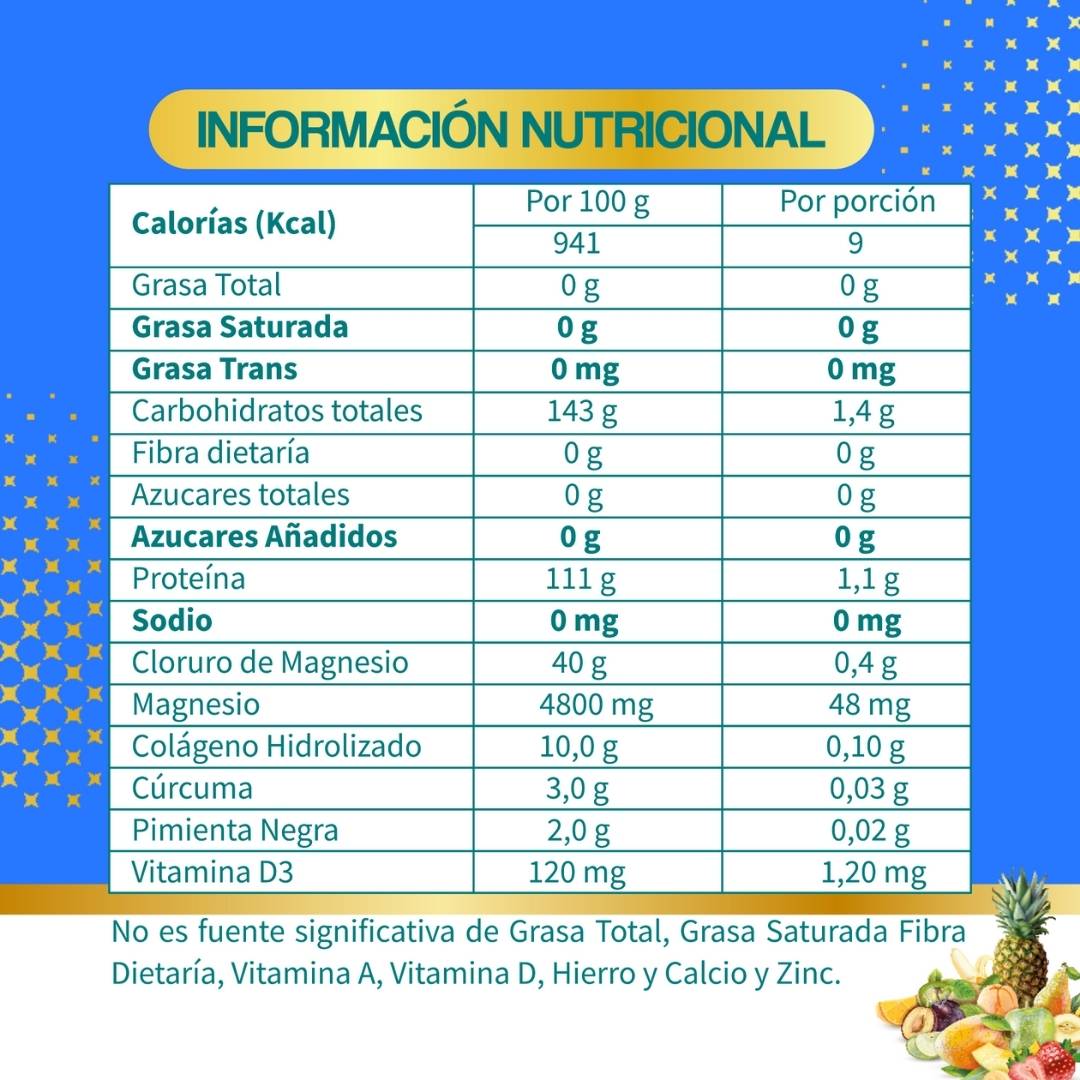- Colágeno Hidrolizado: Mejora la elasticidad de la piel, fortalece articulaciones, uñas y cabello.