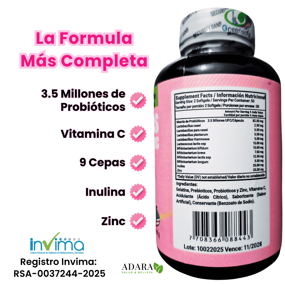 Solo dos Softgels al día, un mundo de bienestar: microbiota en balance, defensas fuertes y confianza total.